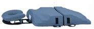3 piece Original bodyCushion: Face, breastProtector and Pelvic Support in Slate Blue with 1 Light Blue Light Blue Cotton Face Support Crescent Cover 5" high foam double strap Face Support attachment $449.00 USD SKU BC3R-B 4 piece Original body Cushion: Face, breastProtector, Pelvic, and choice of 1-piece Leg Support  or 1 piece Leg Support in Slate Blue and 1 Light Blue Light Blue Cotton Face Support Crescent Cover 5" high foam double strap Face Support attachment $599.00 USD SKU BC 60